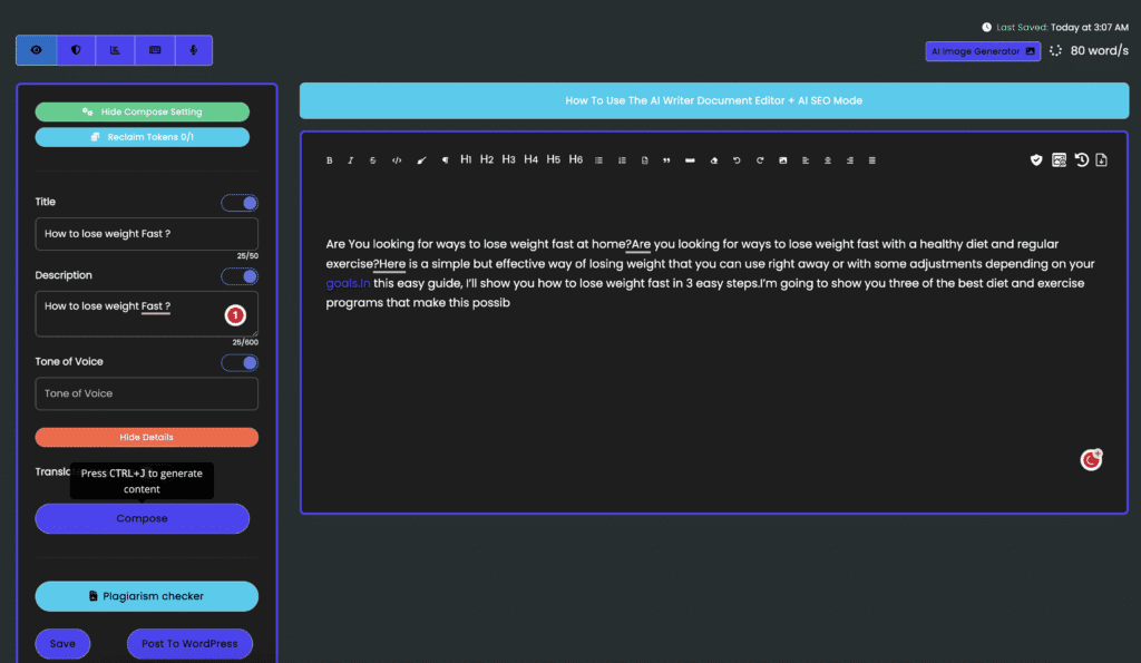 The Built-In SEO mode in Brain Pod AI Writer is one of its most powerful features. With this mode, the tool will automatically optimize your content for search engines like Google, ensuring that your content will rank higher in search results. No more manually tweaking your content for SEO, Brain Pod’s AI-powered tools take care of that for you. This feature is particularly valuable for businesses and content creators looking to increase their online visibility and reach more readers. Plus, when combined with Brain Pod’s other features, such as the AI picture generator and content editing, you can easily create high-quality, SEO-friendly content in minutes.