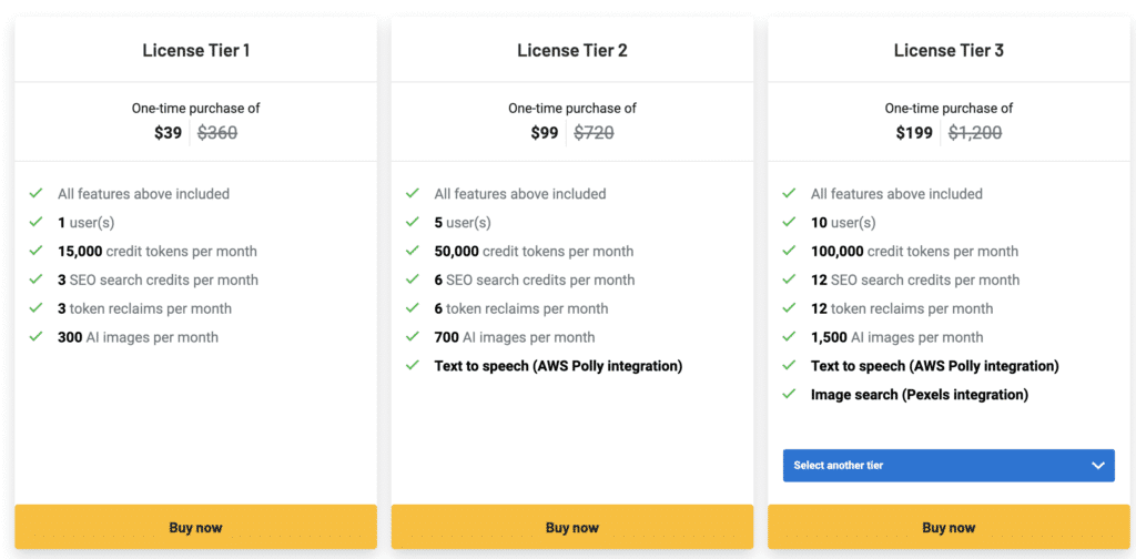 When it comes to pricing, Brain Pod AI Writer offers a range of options to fit your needs. The Basic Plan, which costs $29 per month and allows for two users, can generate up to 40 pieces of content per month. The Pro Plan, on the other hand, supports longer writing and features a higher cap on content generation. And for those who want lifetime access to all features, the Tier 1 license is available for a one-time purchase of $39 (regularly priced at $360). No matter which plan you choose, there is no subscription required to use Brain Pod’s services – you simply pay based on the number of tokens generated per API call. Overall, the pricing structure is flexible and affordable, making Brain Pod AI Writer accessible to individuals and businesses of different sizes and needs.