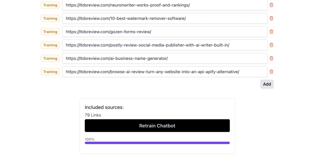 This capability significantly streamlines the process of building and deploying custom chatbots. Instead of manually entering data or uploading files, users can effortlessly train chatbots on specific website content. As a result, chatbots can answer questions relevant to the site and offer quick, efficient assistance to customers on a variety of topics.
