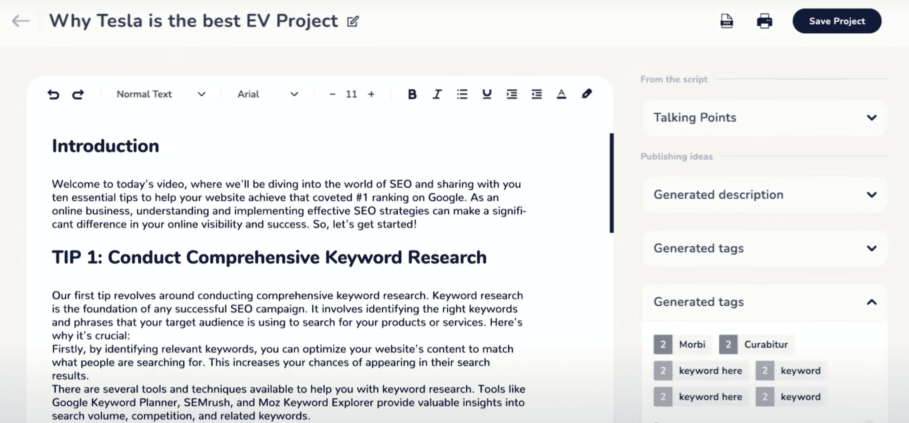 - SEO Optimization: Generating SEO-friendly scripts is a standout feature that helps users rank higher on YouTube. This is crucial for content creators who rely on organic search traffic to increase their reach and viewership.
