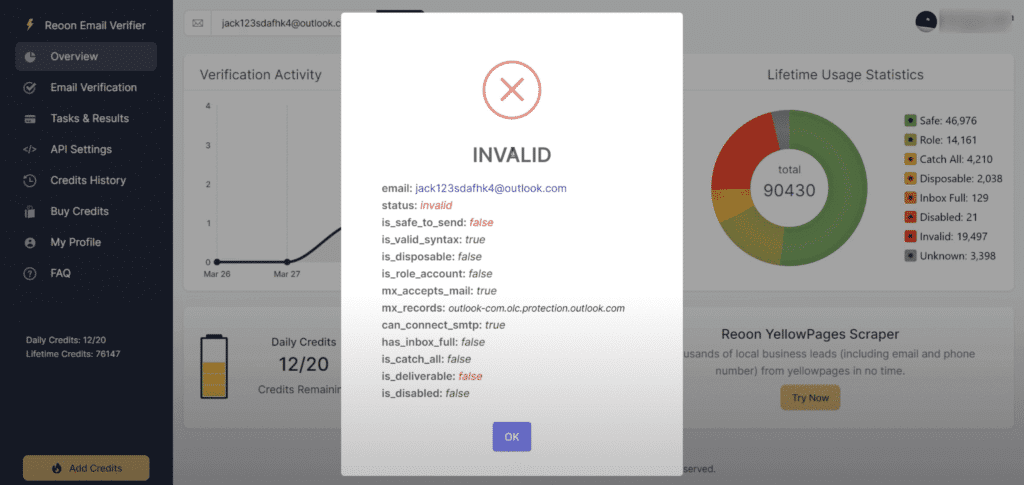 Overall, Reoon Email Verifier is a reliable and accurate email verification software that can save you time and effort in your email marketing campaign. With its comprehensive validation process, you can be confident that your email list is free from invalid and harmful email addresses.