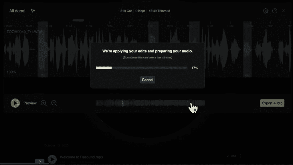 To get started with Resound, simply upload your audio file to the platform and let the AI do the rest. Resound will automatically analyze the file and provide a list of suggested edits, which you can then review and apply as needed.