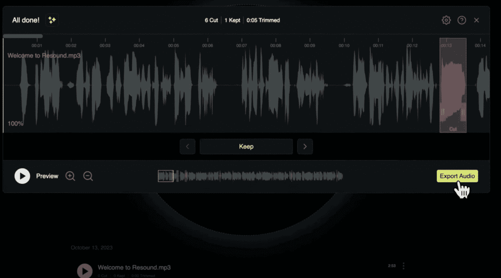 Resound’s AI-powered filler sound detection is a game-changer. It automatically identifies filler sounds and highlights them in the audio waveform, making it easy to see where edits are necessary. This feature saves time and ensures that the final product is free of distracting filler sounds.