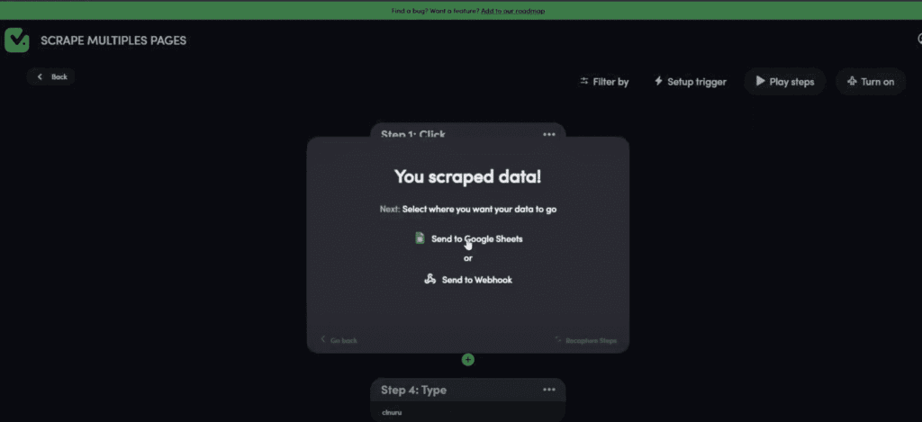 - Create your automation: Once you’ve recorded your task, TaskMagic allows you to create automated workflows. You can include as many steps as you need and customize filters, delays, and even JavaScript to enhance your automation.