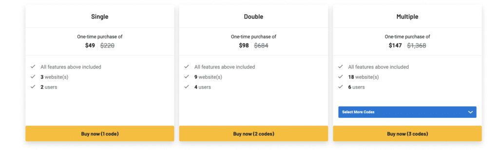 - License Tier 3 One-time purchase of $249 Includes all above features Allows for unlimited users per workspace Unlimited workspaces Private/shared permissions Unlimited file downloads Unlimited tags Unlimited custom step.