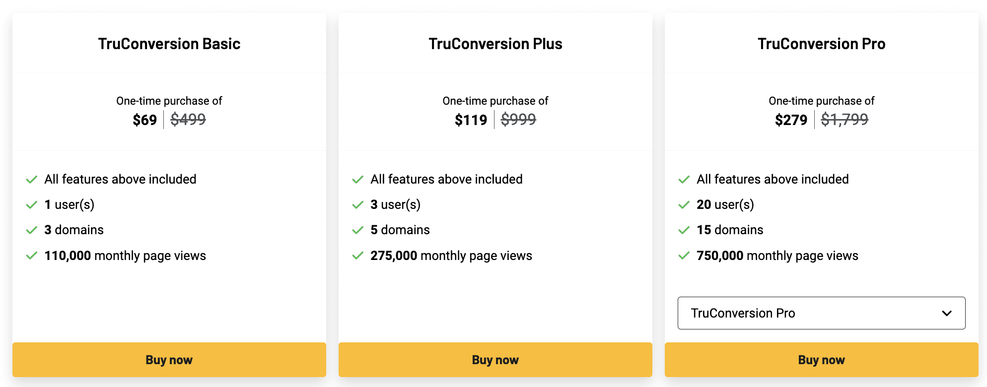 TruConversion also offers lifetime deals, which can be a great option if you’re looking for a long-term solution. These deals come with a one-time payment and lifetime access to the platform. Here are the current lifetime deals available:
