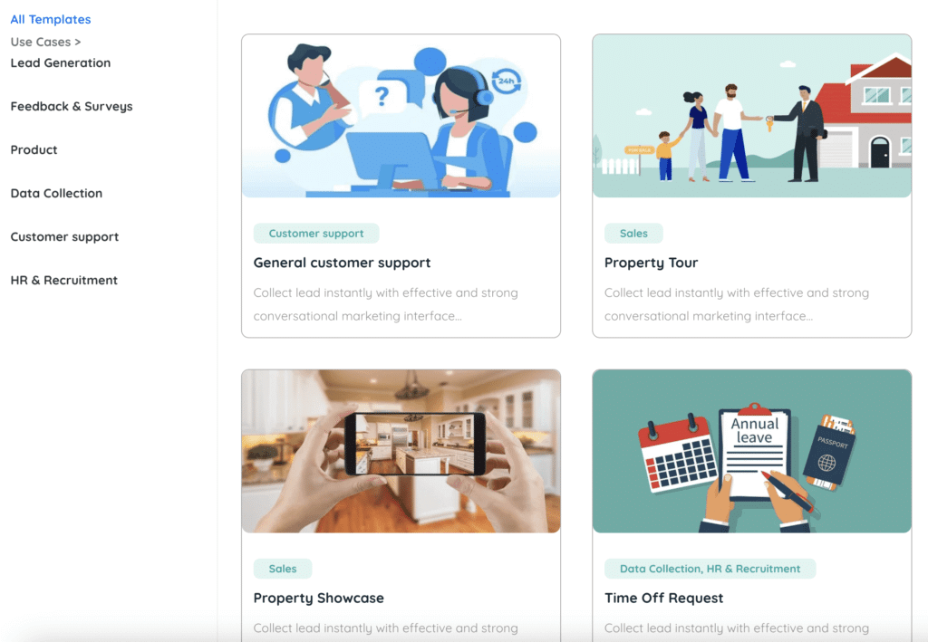 - Quick and easy creation of chatbots with over 30 pre-built templates or the option to start from scratch.