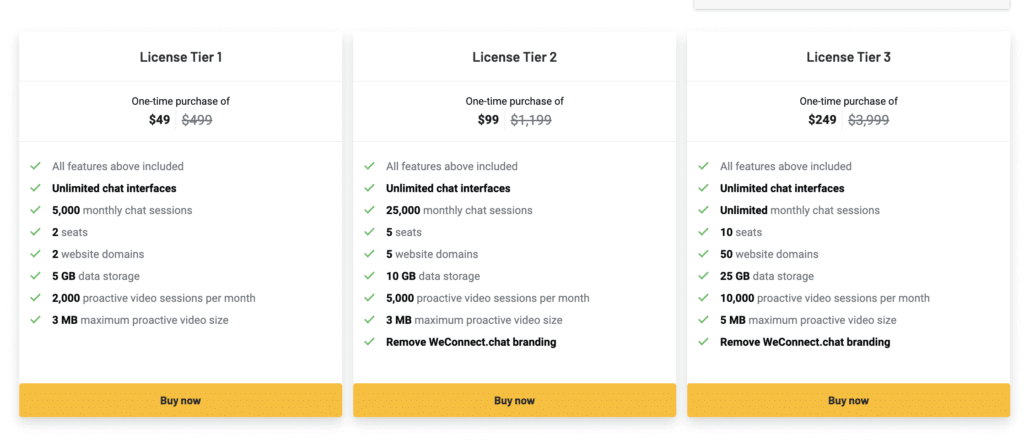 WeConnect.chat is currently offering a lifetime deal on AppSumo, making it a great opportunity to get access to this powerful chatbot builder at a discounted price. The lifetime deal includes the following features: