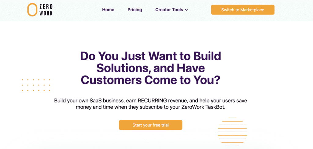 - Marketplace for selling TaskBots: Users can monetize their creations by selling their custom TaskBots on the ZeroWork marketplace, offering potential additional income.